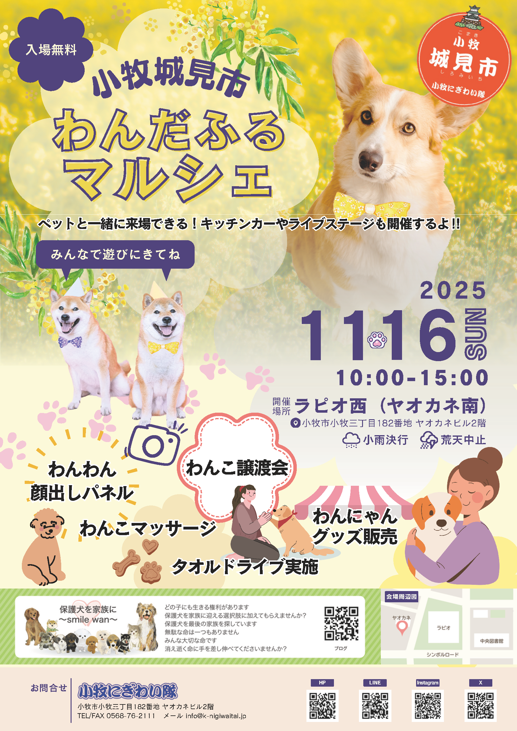 スマイルワン様のブースにおいて、家族のいないワンちゃんの譲渡会を実施します。